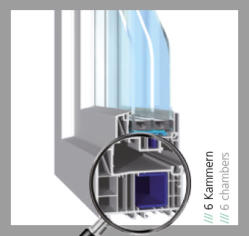 6 Profilkammern in Rahmen und Flügel sorgen für hervorragenden Wärme- und